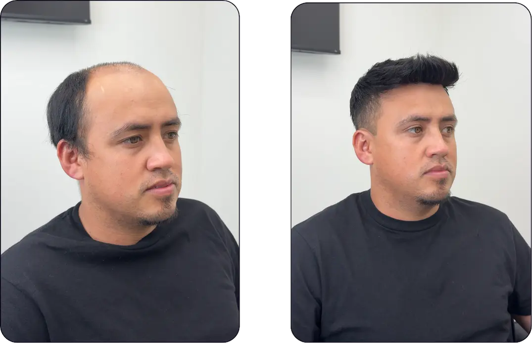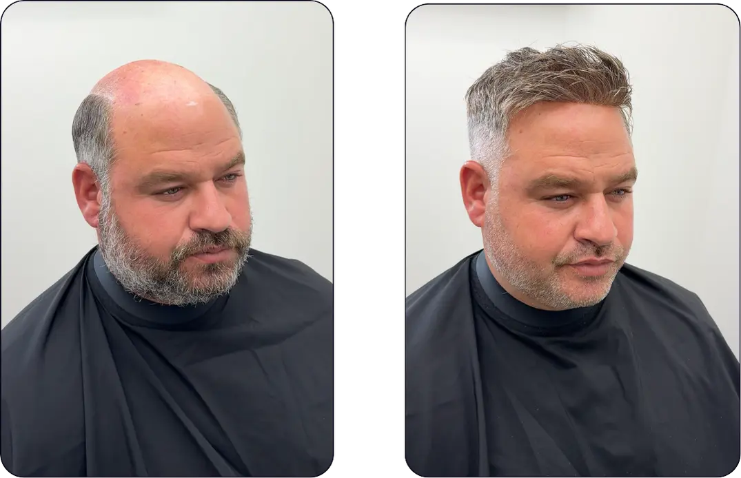 Next is the installation which takes anywhere from 2 to 2.5 hours. In this step, we shave down the hair on top where the new hair system will go. Then it will be cut and styled to blend into your biological hair so it’s seamless and undetectable.
